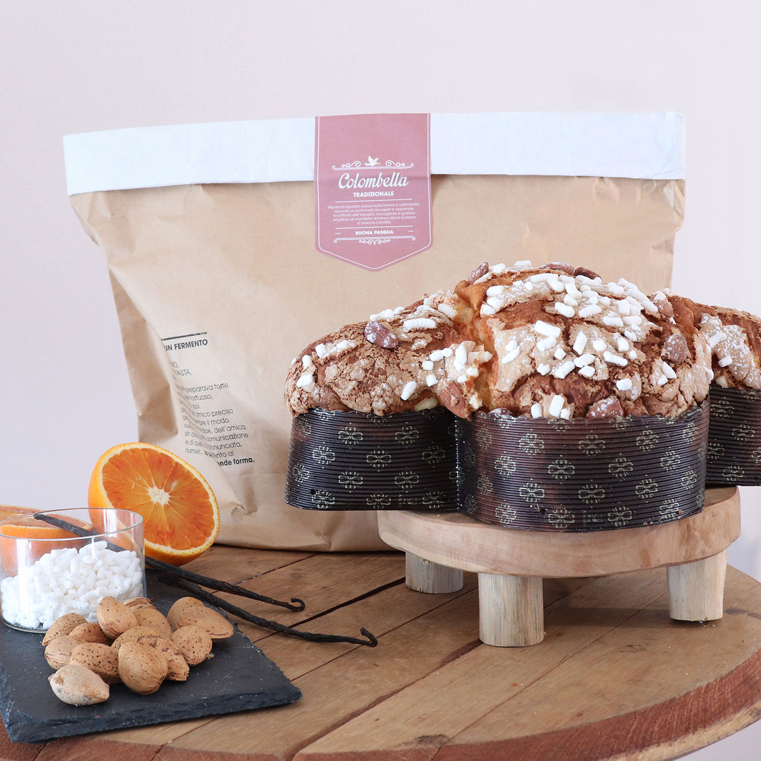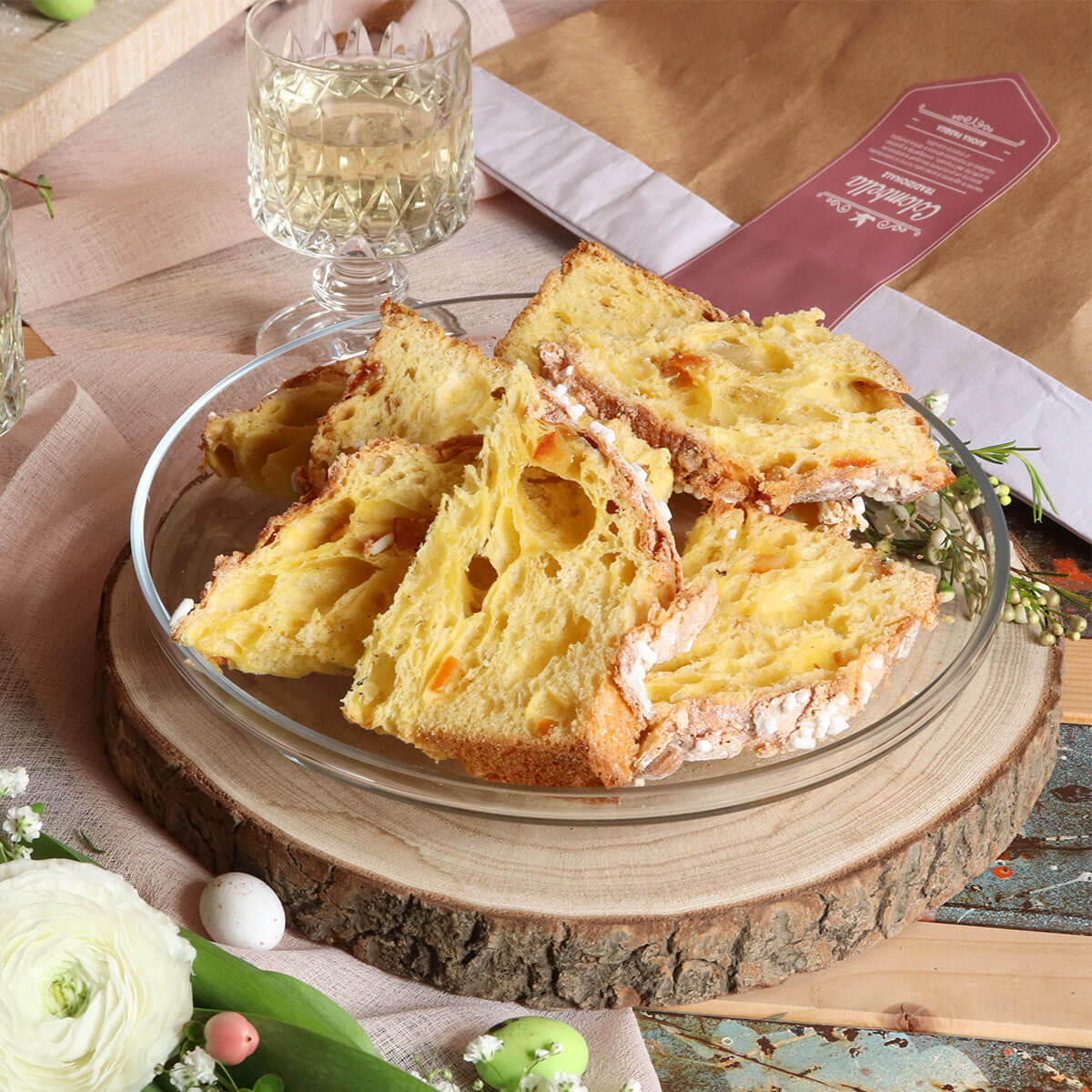 Der natürlich gesäuerte Teig überrascht mit seiner umhüllenden Geschmacksbalance aus Bittermandeln und der Süße kandierter Orangen. Seine zarte Weichheit und sein duftendes Aroma verströmen Frische und Leichtigkeit. Ein perfekter Moment, um ihn zu Hause mit Familie und Freunden zu teilen. Diese köstliche italienische Ostertaube ist das Highlight zu Ostern.