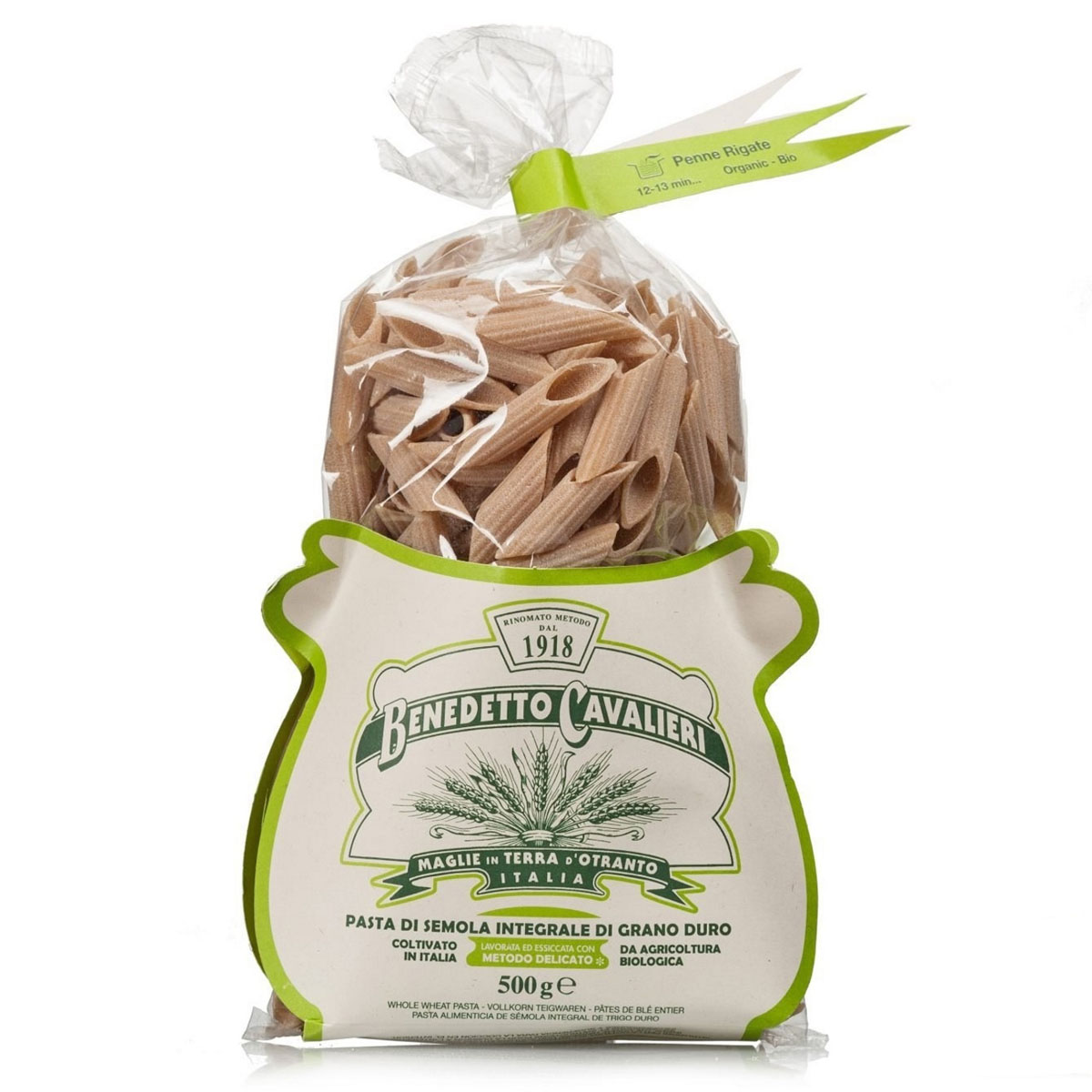 Die Penne Rigate von Pastificio Benedetto Cavalieri werden aus Hartweizengrieß hergestellt, der aus den geeignetsten Weizensorten stammt, die auf geeigneten Böden angebaut werden. Durch die fachmännische Verarbeitung mit der „Delicate-Methode“ erhalten die Vollkornnudeln eine überraschend zähe Konsistenz und einen starken Weizengeschmack.