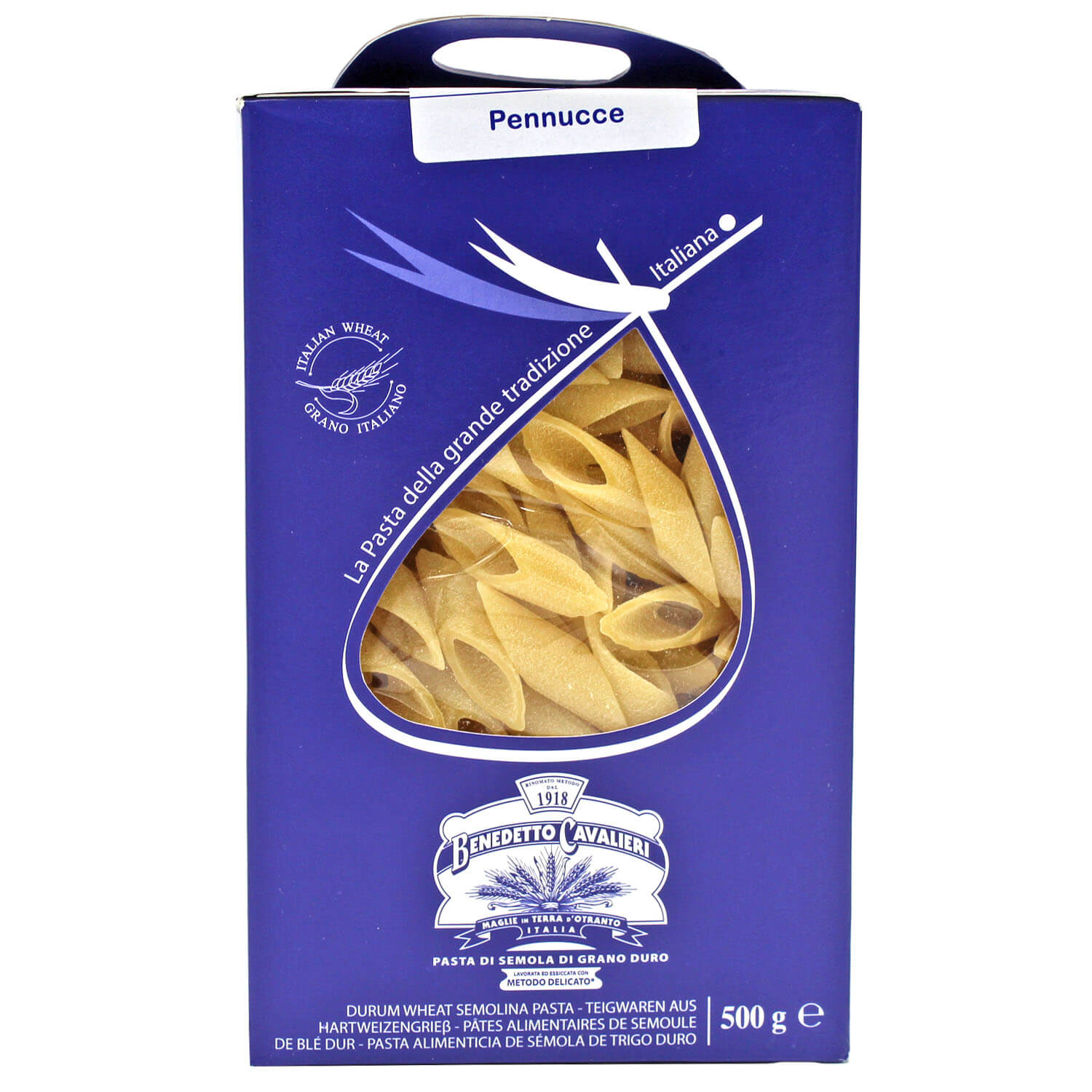 Die Familie Cavalieri begann im frühen 19. Jahrhundert auf ausgewählten Feldern in Apulien mit dem Weizenanbau. Benedetto Cavalieri erbte die Erfahrung seines Vaters im Anbau und Mahlen von Hartweizen und eröffnete 1918 die Mühle und Nudelfabrik: Benedetto Cavalieri. Sein Ziel war die Herstellung von Pasta in Spitzenqualität aus dem „feinen und erlesenen“ Hartweizen der sonnigen Hügel Apuliens. Ein Ziel, das Benedetto Cavalieri erfolgreich verfolgte, indem er internationale Anerkennung erlangte und zu einem Symbol für Qualität und Handwerkskunst wurde. Für die Herstellung hochwertiger, handwerklich hergestellter Pasta werden nur die feinsten Körner, innovative Verfahren und hochmoderne Maschinen verwendet, und zwar nach der bewährten „schonenden Methode des langen Knetens, Pressens und langsamen Bronzeziehens“.