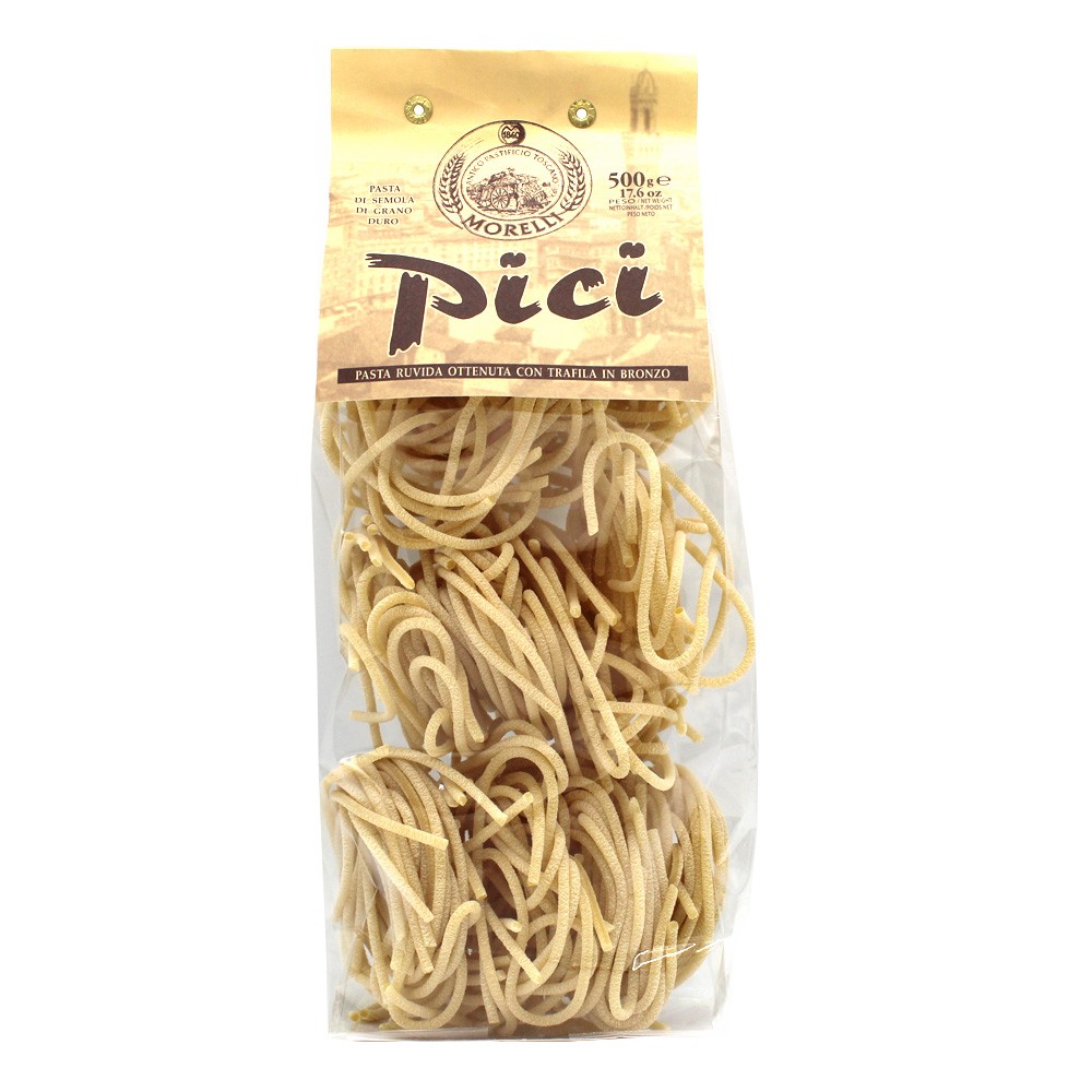 Pici sind handgemachte Spaghetti, typisch für die südliche Toskana, aus den Provinzen Siena und Grosseto. Typische Würzmittel für diese Pastasorte sind unsere Bolognese-Sauce von Amerigo oder andere Pastasaucen. Der Hartweizen ermöglicht eine außergewöhnlich lange Kochzeit von 22 Minuten und sorgt so für nahezu perfekte Ergebnisse. Das Geheimnis der Morelli Pasta-Produkte liegt in einer Zutat, die in Pasta nicht häufig vorkommt: Weizenkeime, die Vitamin E, Vitamin D und pflanzliche Proteine enthalten. Genau genommen handelt es sich bei Weizenkeimen um den Keimling des Weizens, den nährstoffreicheren und daher für den Menschen sehr wertvollen Teil.
