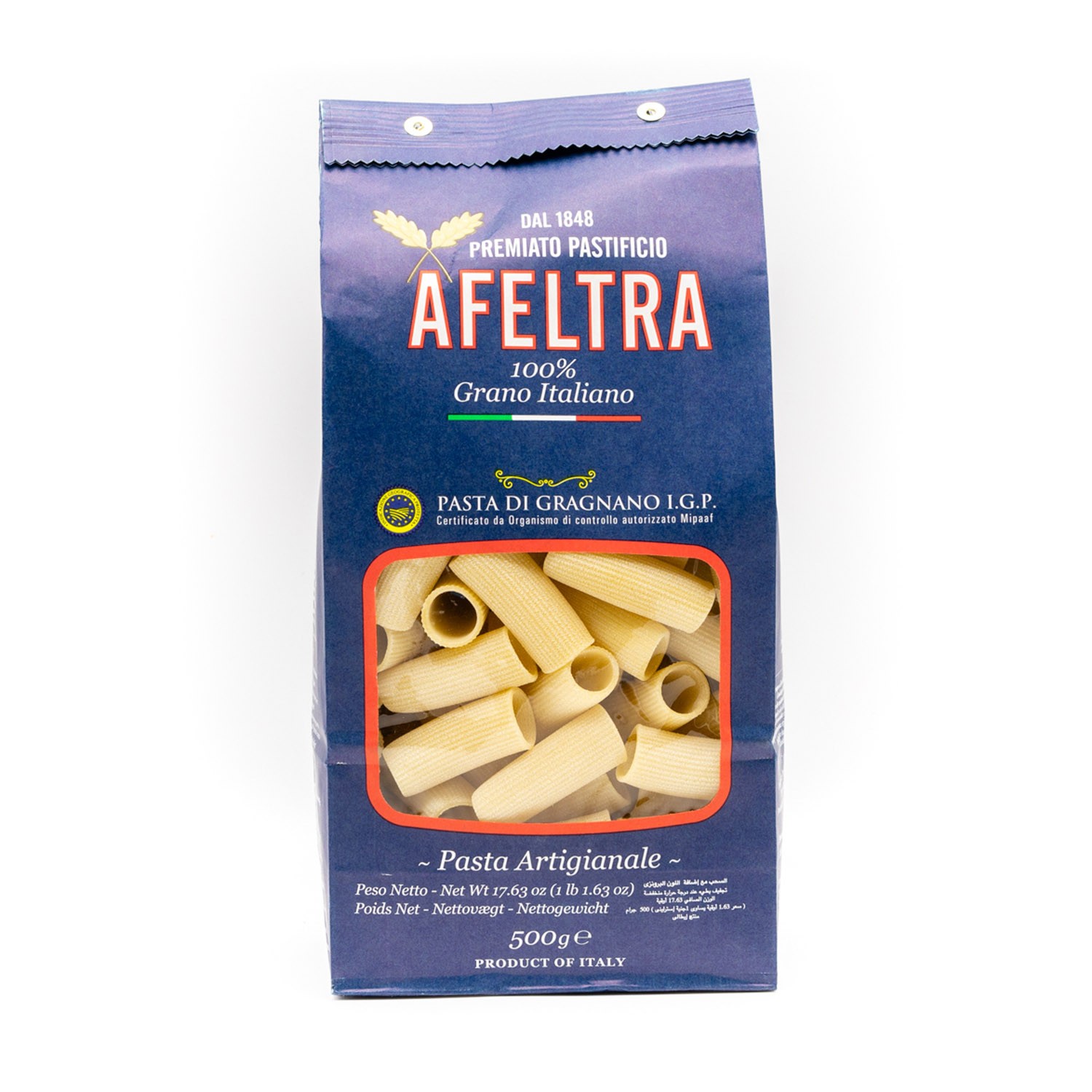 Afeltras Rigatoni werden aus sorgfältig ausgewähltem, 100 % italienischem Weizengrieß hergestellt, mit Wasser aus den Lattari-Bergen vermischt, bronzebehandelt und bis zu 48 Stunden lang langsam getrocknet. Rigatoni sind eine der bekanntesten italienischen Nudelsorten und werden wegen ihrer äußeren Rillen, die die Sauce halten, und ihres hohlen Inneren geliebt, wodurch sie sich perfekt für Timballo oder gebackene Pasta eignen. Der Vorteil von Rigatoni ist, dass Sauce, Fleisch und Gemüse schön in den Röhrchen gepackt sind, was jeden Bissen zu einem wahren Genuss macht. Probieren Sie Rigatoni mit unserer Arrabiata- oder Amatriciana-Nudelsauce oder im Herbst/Winter mit unserer Funghi-Porcini- oder Bolognese-Nudelsauce.