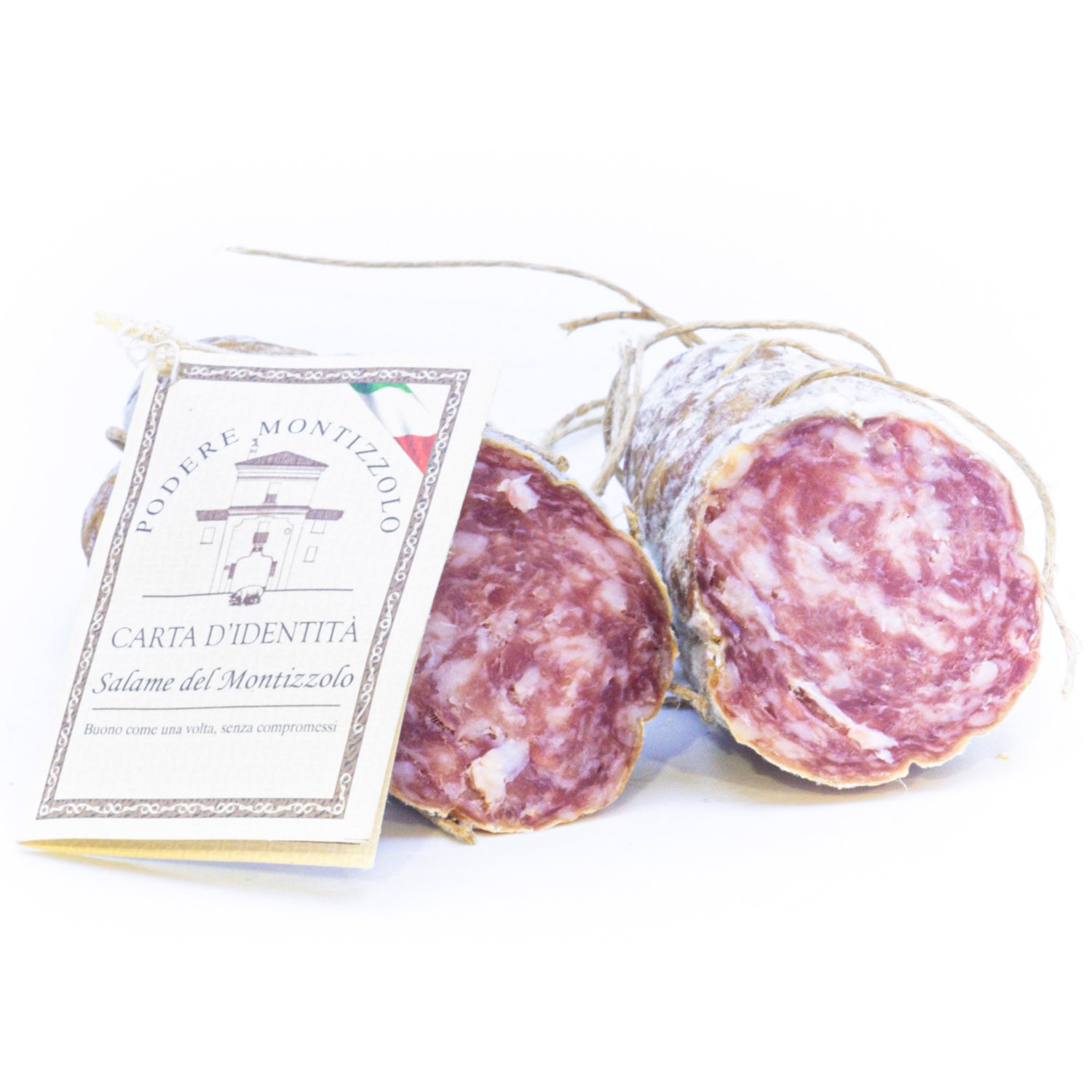 Diese köstliche italienische Salami wird ausschließlich aus Schweinen vom Bauernhof in Cascina Montizzolo in der Nähe von Bergamo in Norditalien hergestellt. Für die Herstellung von Salame del Montizzolo wird „das ganze Schwein“ verwendet: Das bedeutet, dass alle Teile des Schweins verwendet werden, einschließlich des besten Teils: die Schenkel, in der wahren Tradition von Podere del Montizzolo. Dieser Teil wird normalerweise nur für Prosciutto verwendet, was diese Salami so einzigartig und beliebt macht. Während des Produktionsprozesses wird das Fleisch ständig mit pH- und Temperaturmessungen überwacht, um die Qualität in jedem Schritt zu optimieren. Die perfekte Kombination aus Tradition, Qualität und Innovation, und das schmeckt man in dieser köstlichen italienischen Salami. Sehr empfehlenswert für jede Vorspeisenplatte, jeden Aperitif oder einfach als Snack.