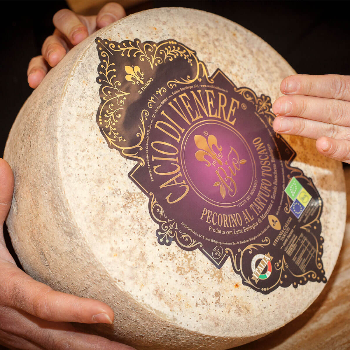 Cacio di Venere ist ein pasteurisierter Schafskäse mit weißem Trüffel, der mindestens fünf Monate gereift ist. Er ist milchig und fruchtig mit einem starken, perfekt ausgewogenen Trüffelaroma.