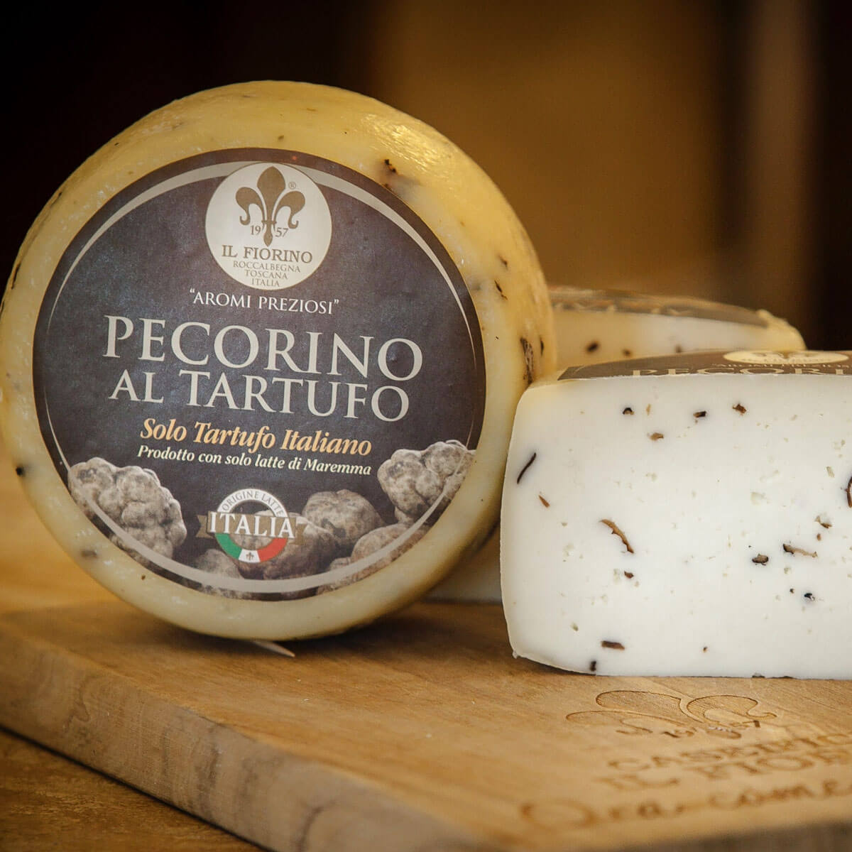 Ein Pecorino aus hochwertiger Maremma-Schafsmilch, kombiniert mit dem einzigartigen Geschmack von Schwarzwurzeln und Bianchetto-Trüffeln, fein gehackt und in Scheiben geschnitten, für mehr Fülle und Geschmack. Das Ergebnis ist ein Pecorino von höchster Qualität mit weicher Textur und einem zarten Aroma am Gaumen, ohne aufdringlich zu sein, und mit einer glatten und löslichen Textur.