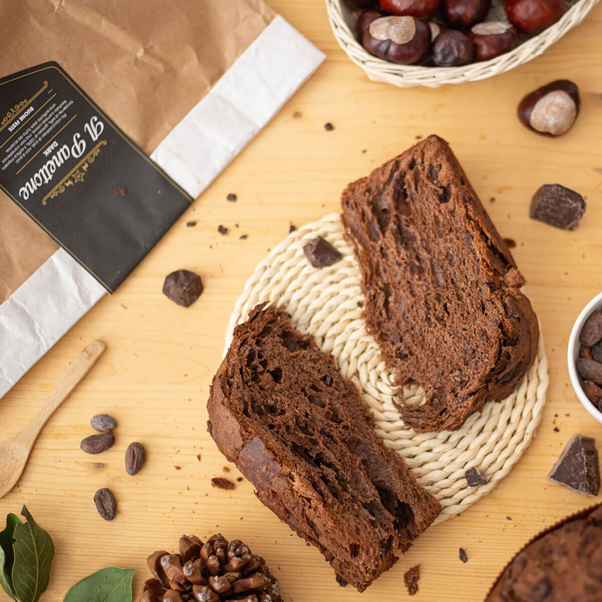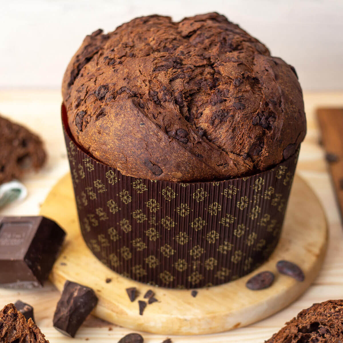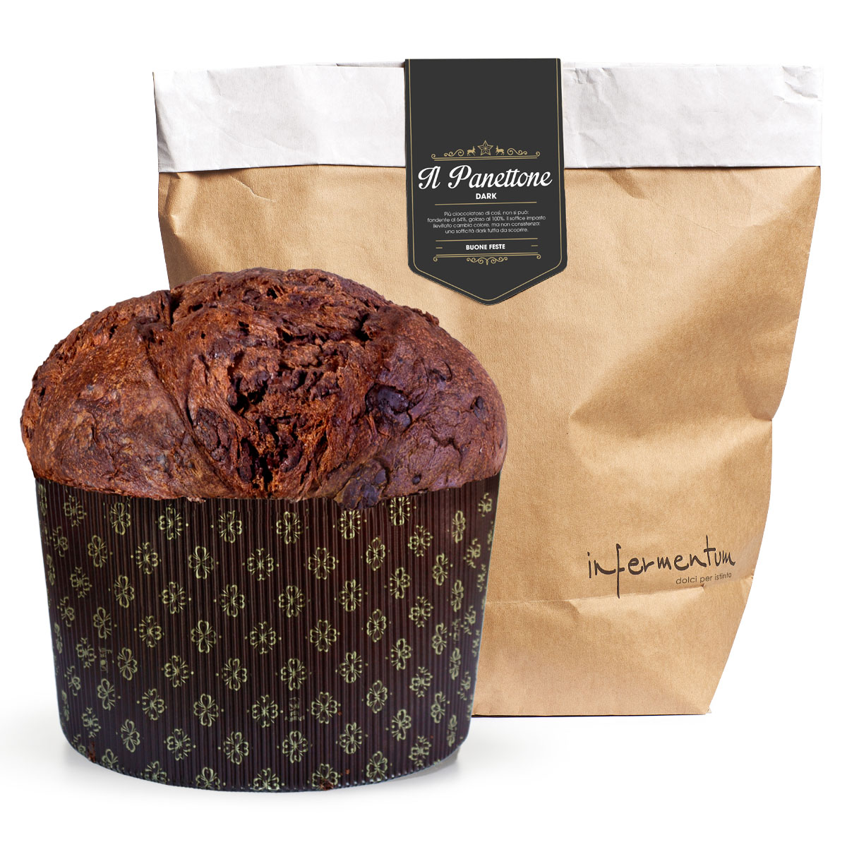 Panettone Dark ist eine super limitierte Edition von Infermentum für dieses Weihnachten. Der ideale Panettone für Kakao- und Schokoladenliebhaber. Er enthält Kakaopulver im Teig und dunkle Schokoladenstückchen.