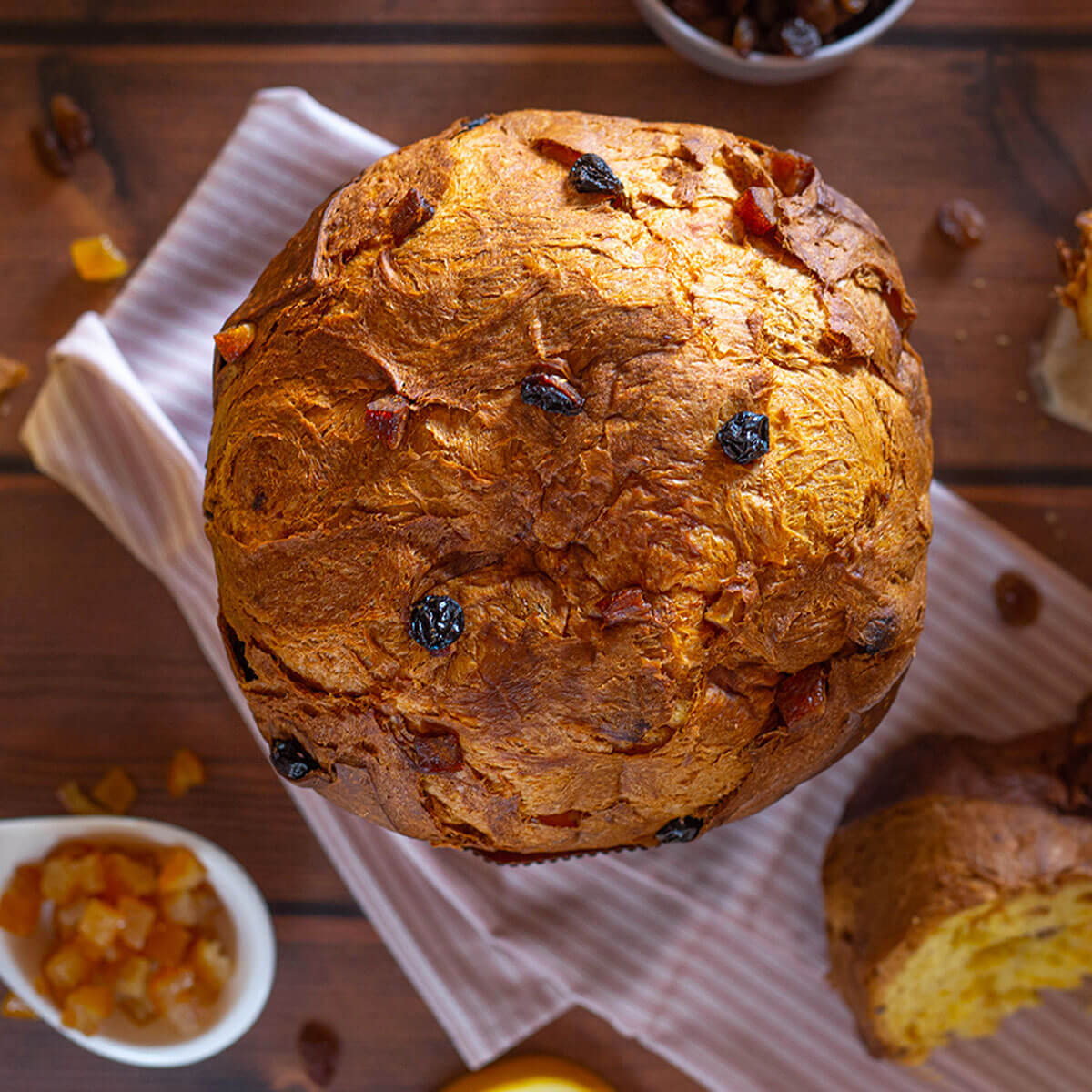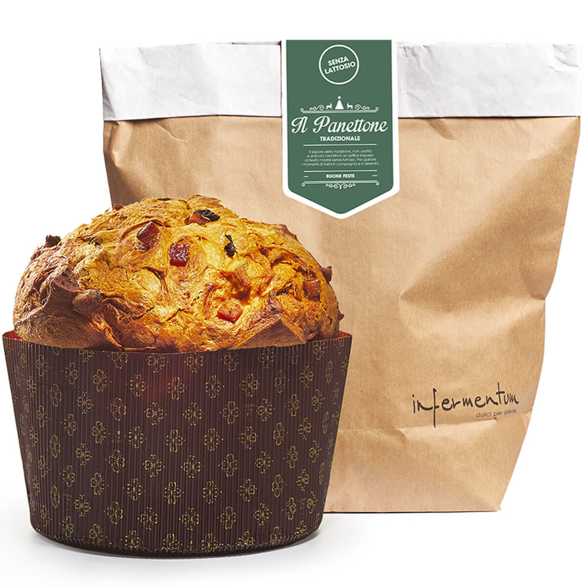 Der Panettone Classico in der LAKTOSEFREIEN Variante. Der weiche Teig enthält Rosinen, kandierte Orangen nach französischer Naturmethode und das unverwechselbare Aroma madagassischer Bourbon-Vanille.