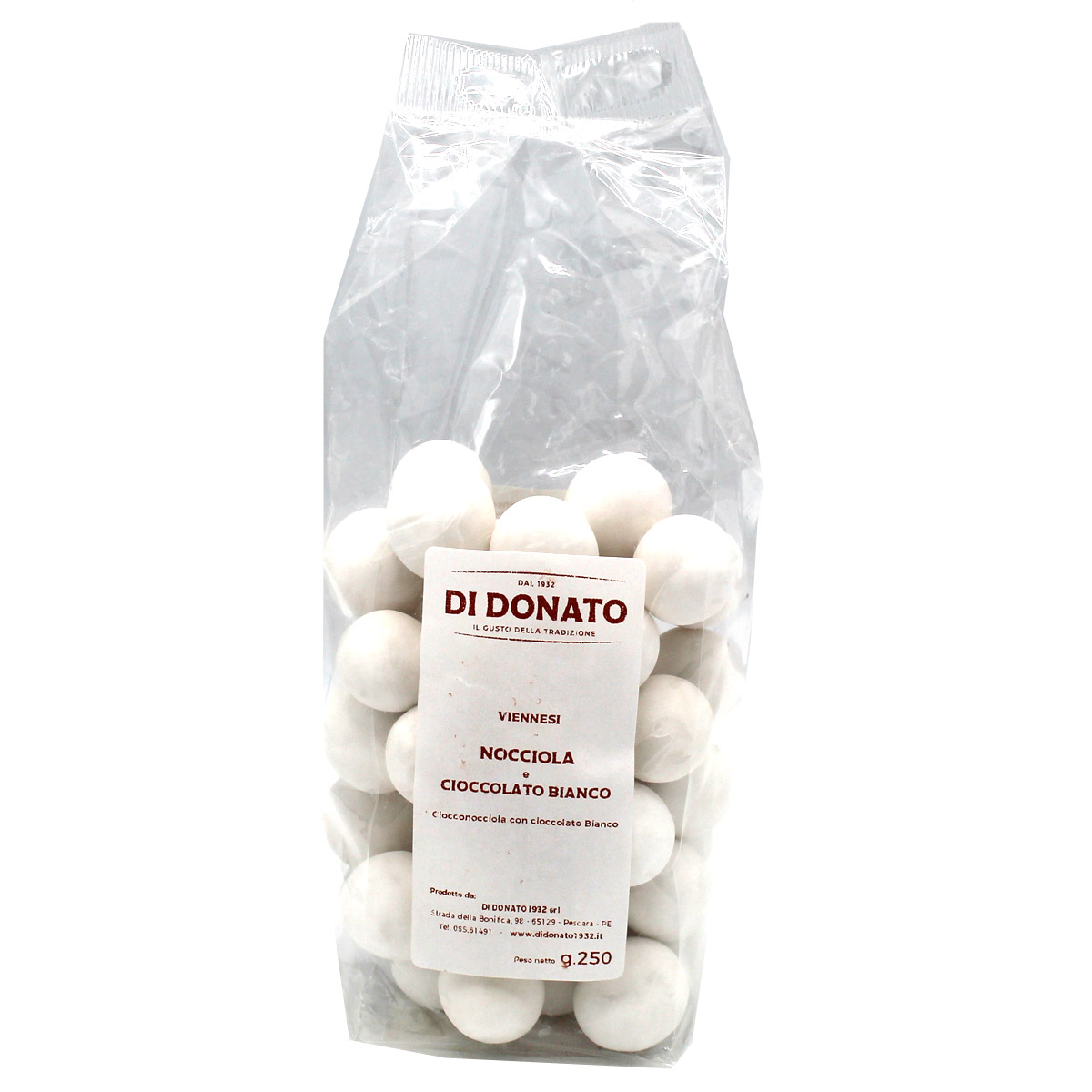 Ganze, geröstete Haselnüsse, umhüllt von unserer feinen weißen Schokolade und geschützt durch feinstes Konfekt. Dieses köstliche Haselnuss-Konfetti mit einzigartigem Geschmack wird von Di Donato 1932 in Pescara mit viel Liebe hergestellt. Es belegt den ersten Platz (10) auf der Liste der besten Konfettis und Nougats Italiens – und das schmeckt man. Purer Genuss für jeden Anlass und jede Tageszeit – es gibt immer einen Grund dazu. Das Konfetti eignet sich auch hervorragend zum Mitnehmen für einen Besuch oder zum Verschenken.