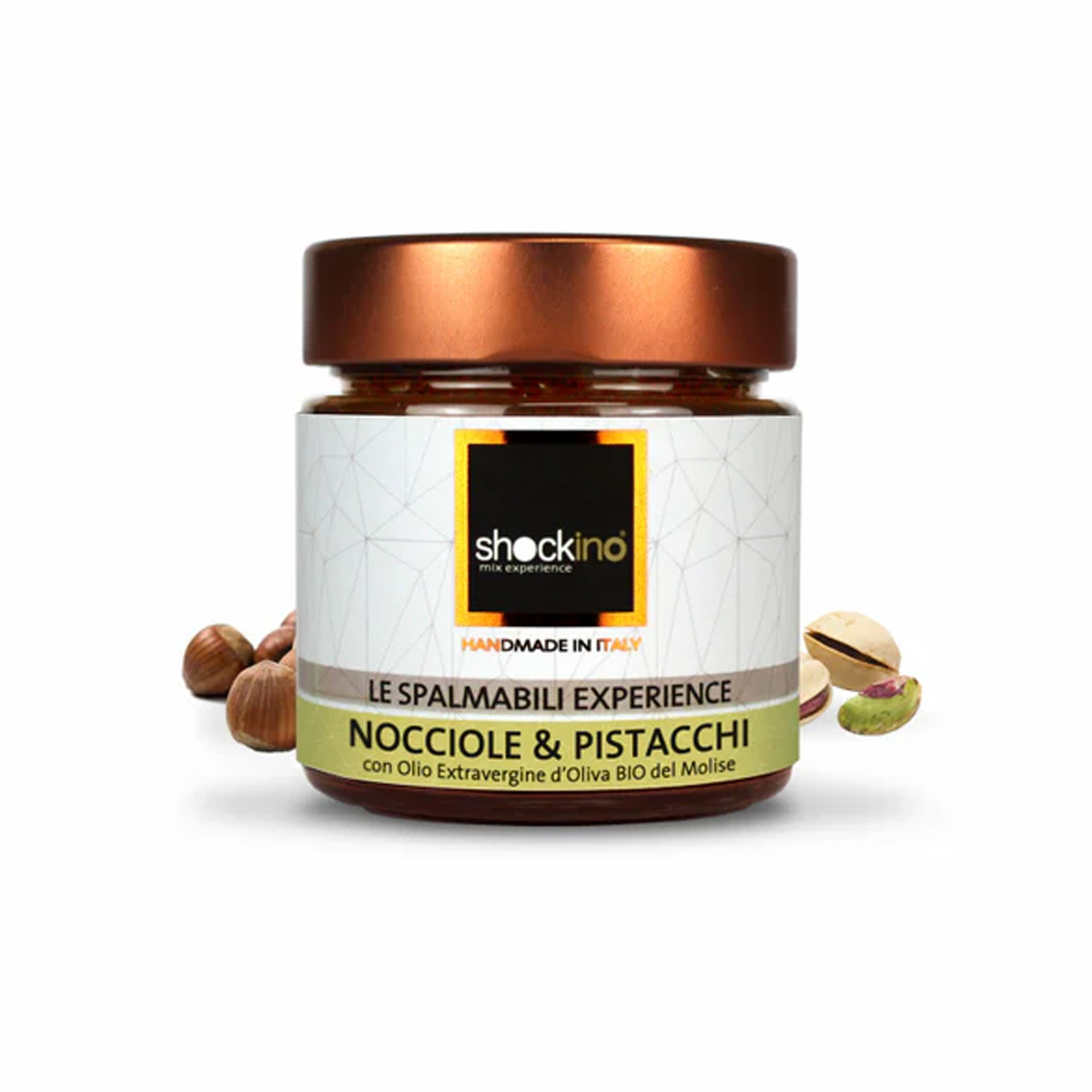Handwerklich hergestellte Streichcreme mit Piemont-Haselnüssen (45%) und gehackten sizilianischen Pistazien. Eine himmlische Mischung: Dieser Haselnuss-Pistazien-Aufstrich bietet eine intensive Geschmacksmischung. Die Pistazie ergänzt und verfeinert den Geschmack der gerösteten Haselnüsse.