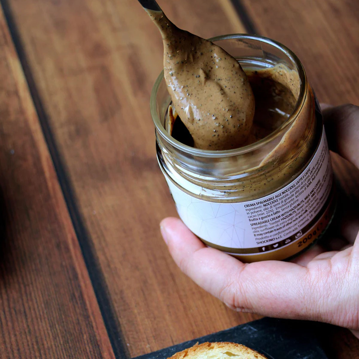 Ein handgemachter Brotaufstrich mit Haselnüssen und Kaffee für einen raffinierten und vollen Geschmack.