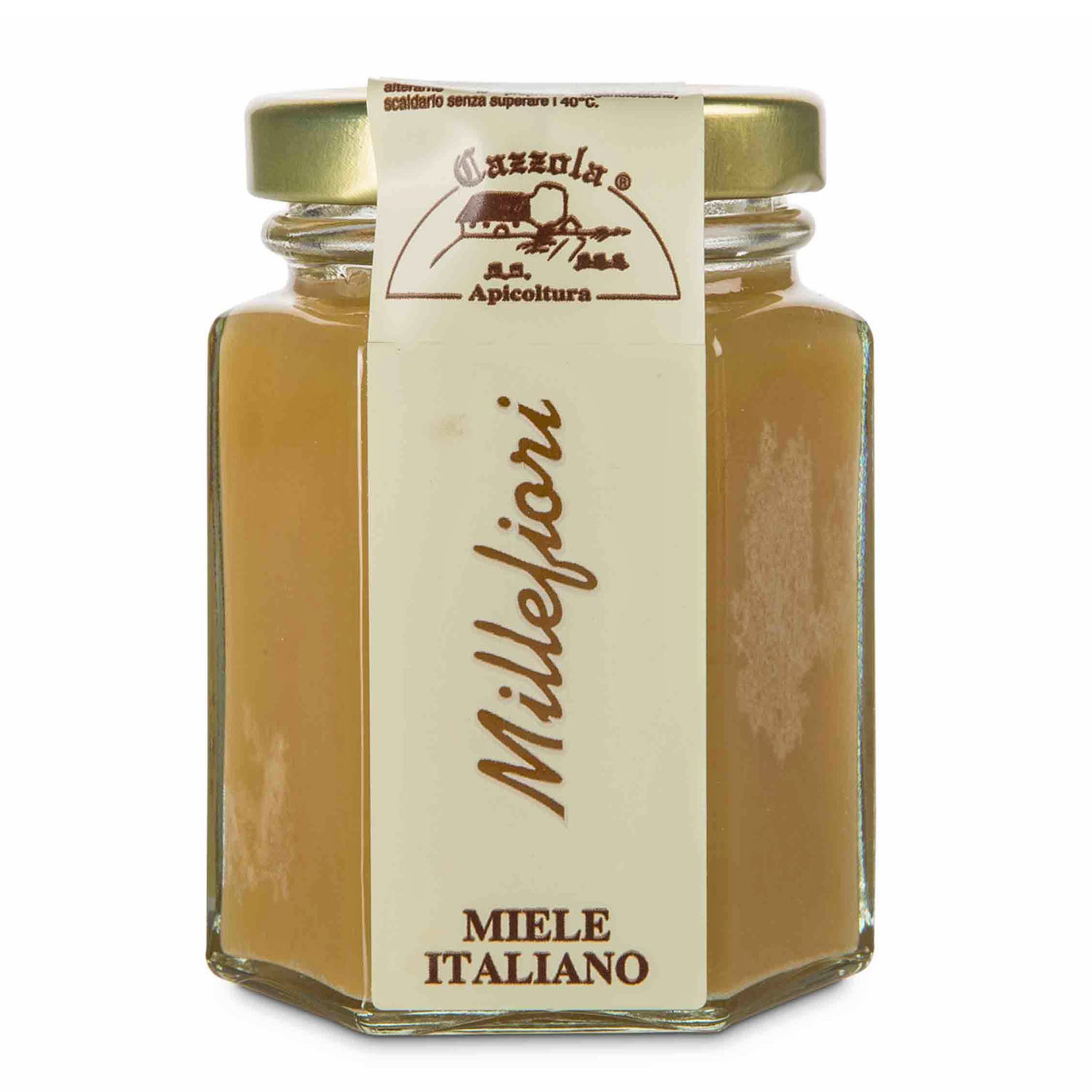 Wildblütenhonig, auf Italienisch: Milleflori, Honig der tausend Blüten. Dieser köstliche Honig wird aus dem Nektar von Blüten hergestellt, die zu einer bestimmten Zeit an einem bestimmten Ort blühen. Eine exakte Reproduktion ist nicht von Jahr zu Jahr möglich. Der Geschmack ist süß, blumig und frisch. Oftmals dominiert ein Nektar oder eine bestimmte Blütenmischung, die ihm einen unverwechselbaren Geschmack verleiht, der von Jahr zu Jahr variieren kann. Köstlich in Kombination mit Joghurt und Frischkäse.