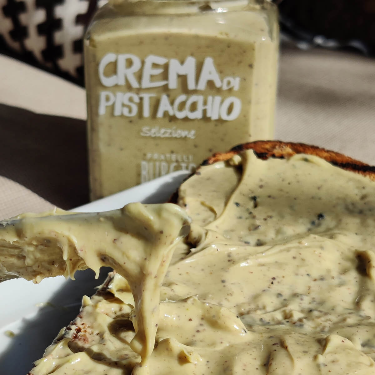 Entdecken Sie diesen köstlichen Pistazienaufstrich aus Sizilien. Die Crema di Pistacchio von Fratelli Burgio aus Pistazien und weißer Schokolade hat einen süßen und süchtig machenden Geschmack, der in seiner Art einzigartig ist. Dieser köstliche sizilianische Pistazienaufstrich wird ausschließlich aus sizilianischen Pistazien hergestellt. Ideal für jedes Frühstück, als Snack, als Topping oder Dessert. Köstlich auf Brot oder einem warmen Croissant. Vorsicht, dieser köstliche Aufstrich macht süchtig! Dies ist eine unserer beliebtesten Köstlichkeiten.